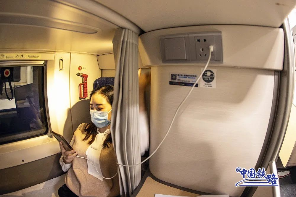 包厢设计比照航空商务舱,脚下与旁边铺位头部空间共享,可大幅提高空间利用效率。这就是为什么会出现“凹”铺位和“凸”铺位的原因。
