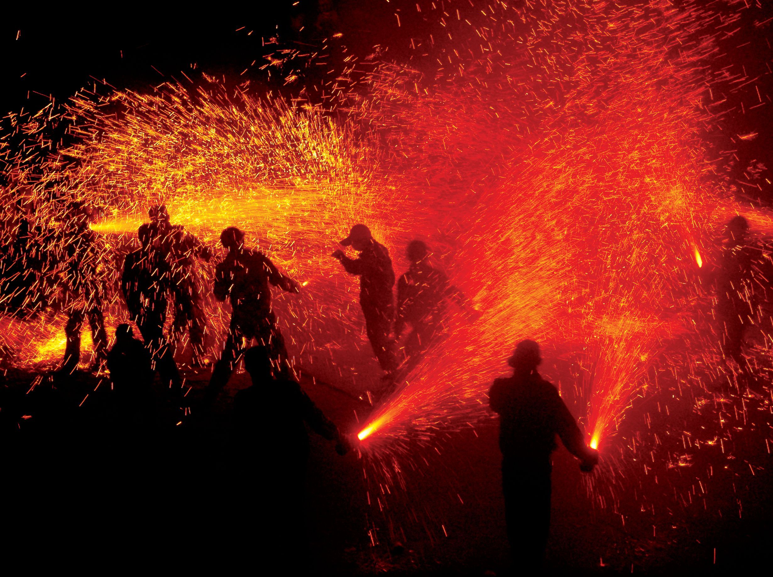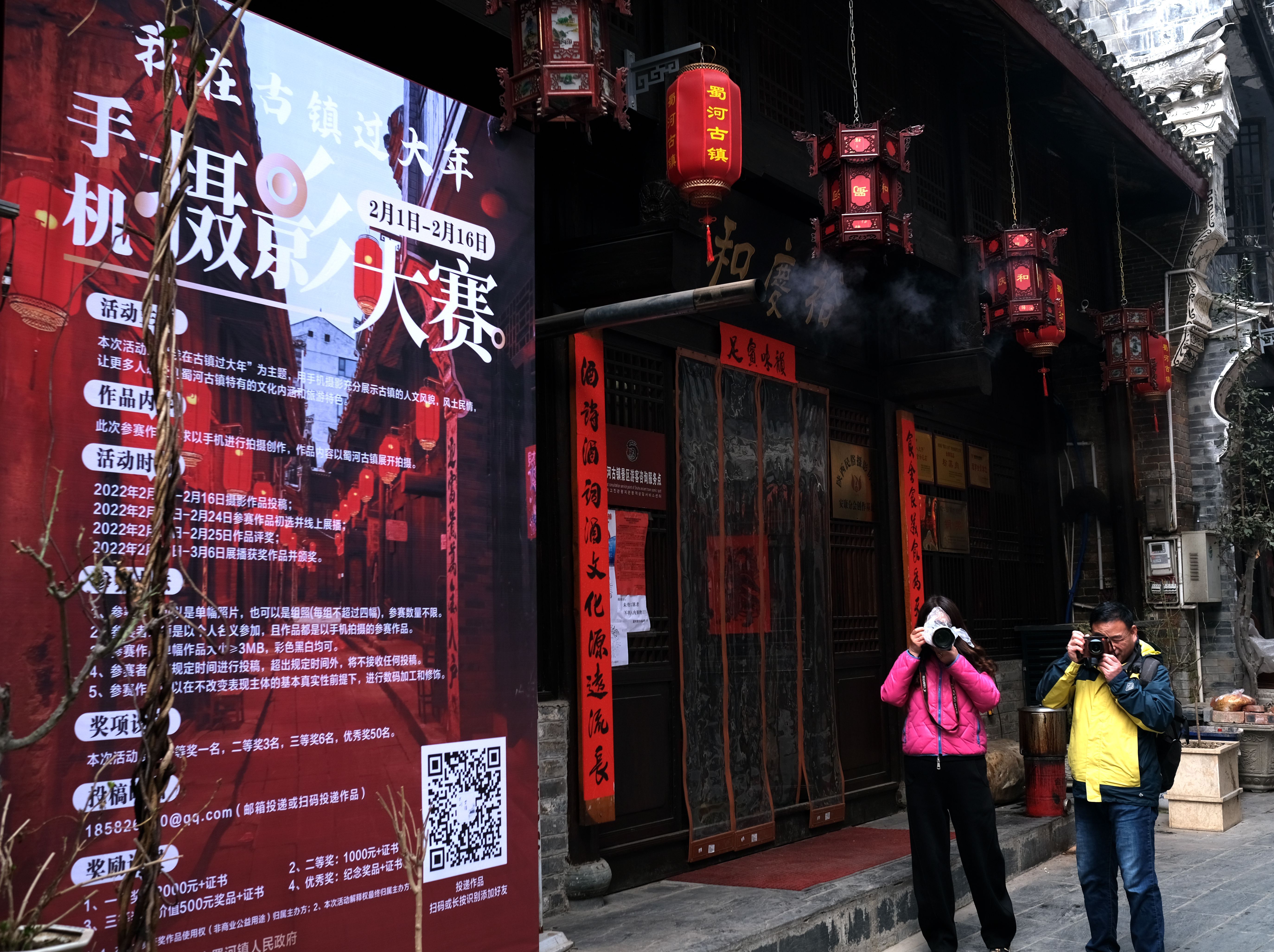 2022年正月,陕西旬阳市蜀河古镇民俗文化活动异彩纷呈,2013年被列入省非物质文化遗产的“传统火烧 狮子”“双彩车”等民俗项目闹红正月元宵节“我在古镇过大年”手机摄影大赛同时启动。 ( 潘定安 摄)