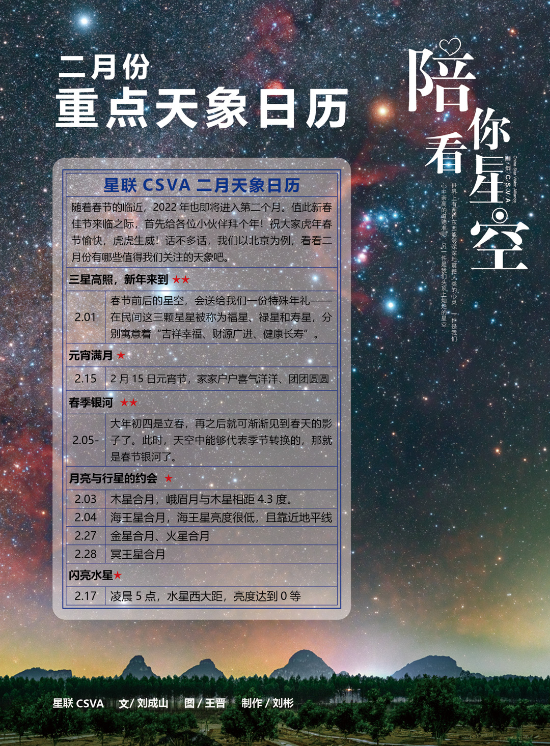 ▲星联CSVA2月天象日历(点击保存,随时查阅更方便哟)