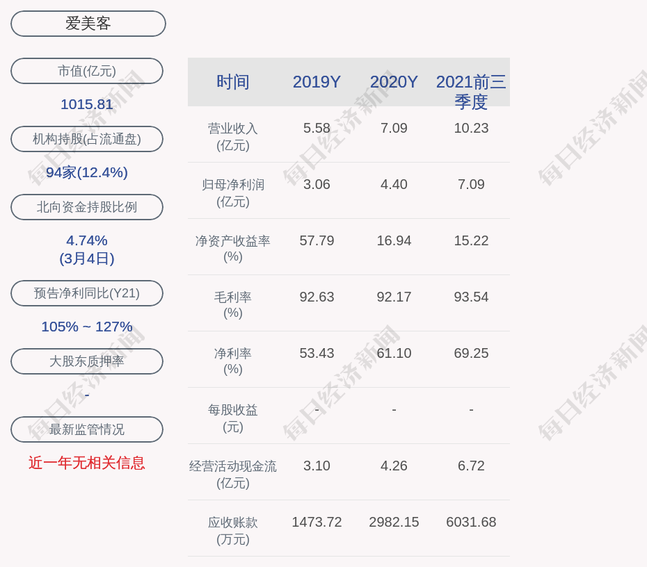 爱美客:2021年度净利润约9.58亿元,同比增加117.81%