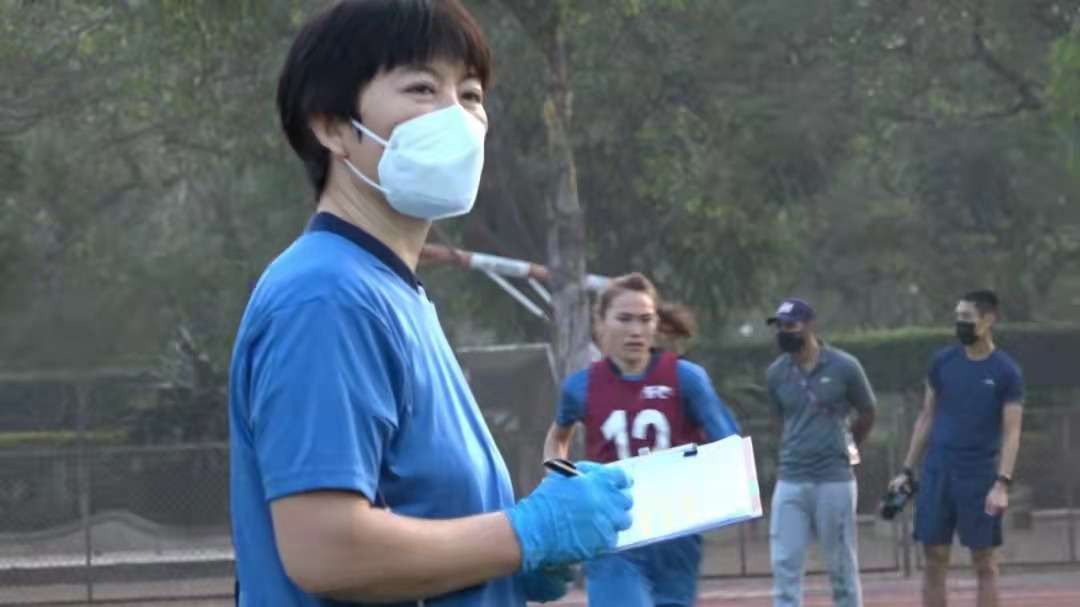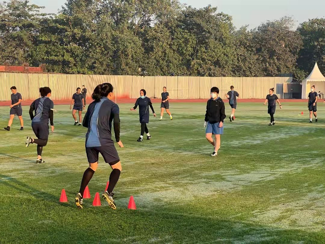 张玲玲:这次裁判员的训练场地在大学里面,为了尽可能降低新冠感染的风险,我们都是选在早晨训练,所以每次去场地布置器材的时候天都没亮。另外中间有一个周还暂停了室外场地和室内健身房的使用而改为房间内训练。孟买地区的气候湿热,执法过程对裁判员的体能要求相对更高。所以我们不能强调客观理由,保障比赛是必须的。最终我们通过合理的练习手段在房间内完成了灵敏、力量和有氧的体能保障。裁判员在比赛中展现了很好的体能状态,确保了比赛的顺利进行,我们的工作得到了亚足联裁判办和裁判同行的高度认可。