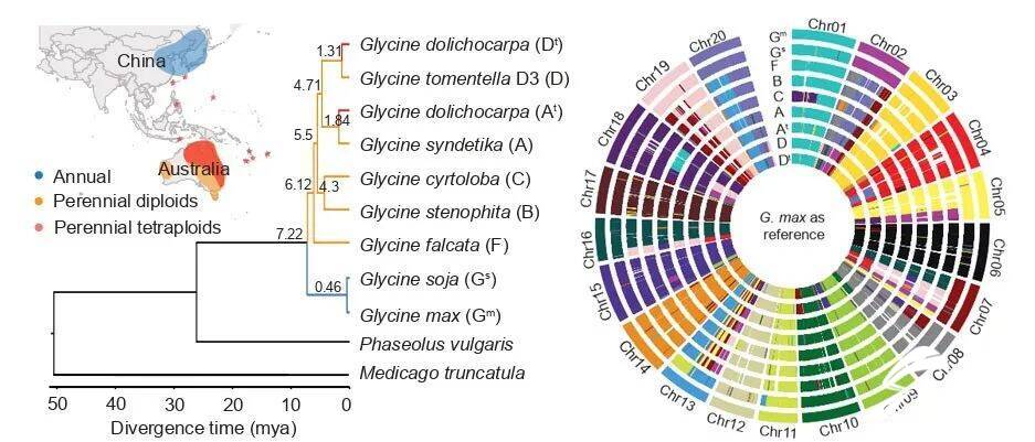 该成果首次构建Glycine大豆亚属基因组,是多年生野生作物资源研究的重要突破,填补了Glycine大豆亚属基因组的空白,为创制大豆高产优质新品种提供了有效的基因靶点。