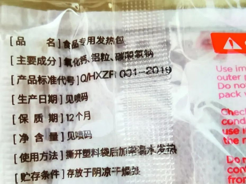严禁拆撕加热包袋!