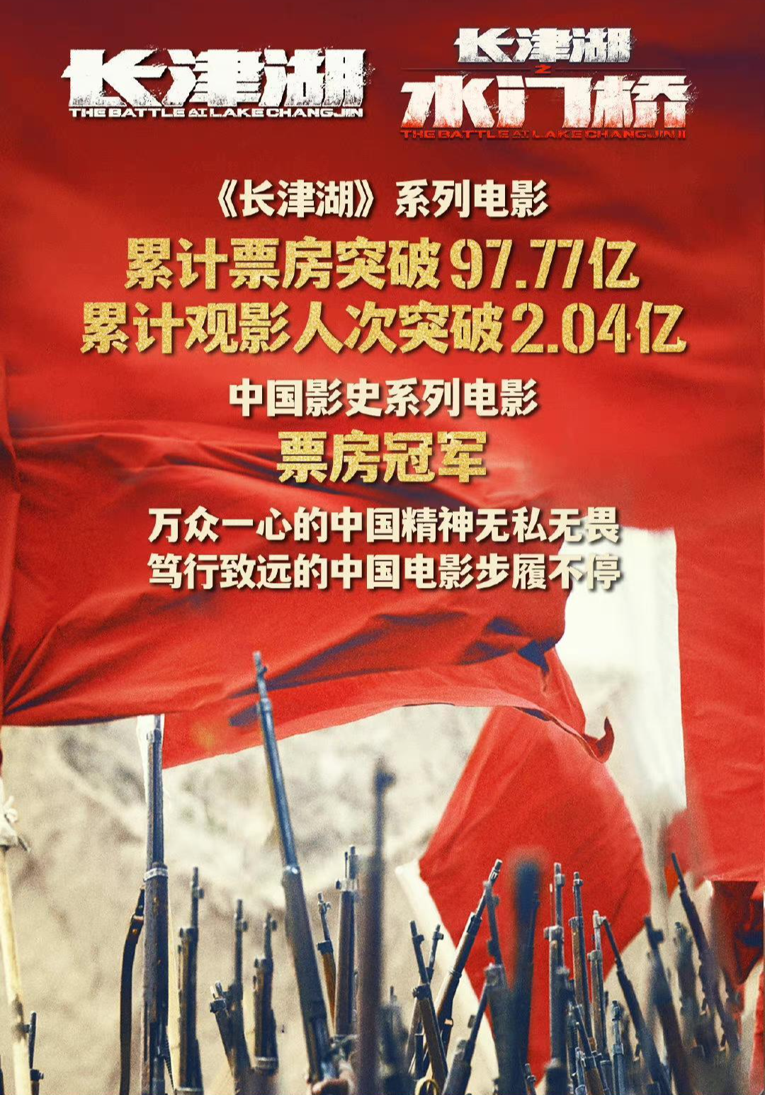 此外,由吴京、易烊千玺等主演的电影《水门桥》累计票房在近日突破40亿。目前《长津湖》系列电影累计票房破97.77亿,累计观影人次突破2.04亿。