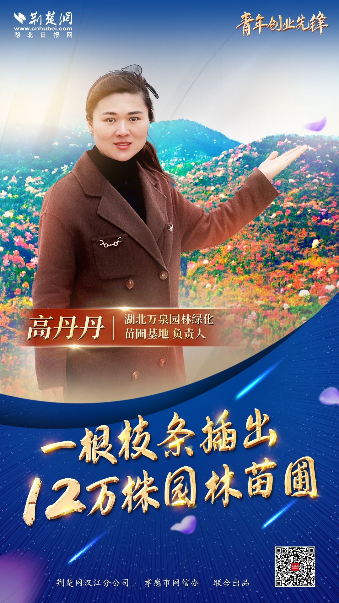 大悟县回乡创业大学生高丹丹,今年35岁,是大悟县彭店乡杨畈村党支部党员,中国共产党孝感市第七次代表大会党代表,荣获孝感市五一劳动奖章、大悟县“创业之星”。十年时间,一根紫薇枝条扦插出12万株园林苗圃,她是如何做到的?