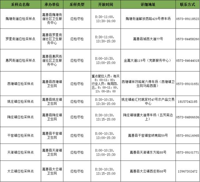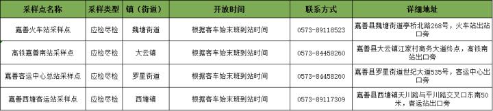 嘉善县重点场所(车站)采样点