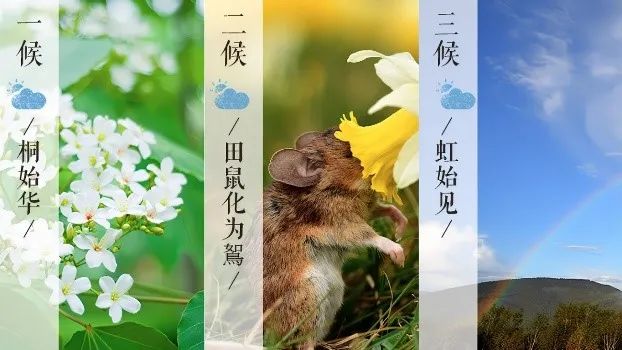 清明得名则来源于这时的物候特征。西汉时期《淮南子·天文训》这样说:“春分后十五日,斗指乙,则清明风至。”“清明风”就是清爽明净之风。汉初《逸周书·时训解》对清明时期的物候特征进行了这样的描述:初候桐始华;二候田鼠化为驽;三候虹始见意。显然,清明时处早春,春光明媚,万物复苏,气候宜人且一派生机勃勃的景象,非常出游玩乐。“清明”这一称呼为的就是让大家一看到就能想到春天的样子。