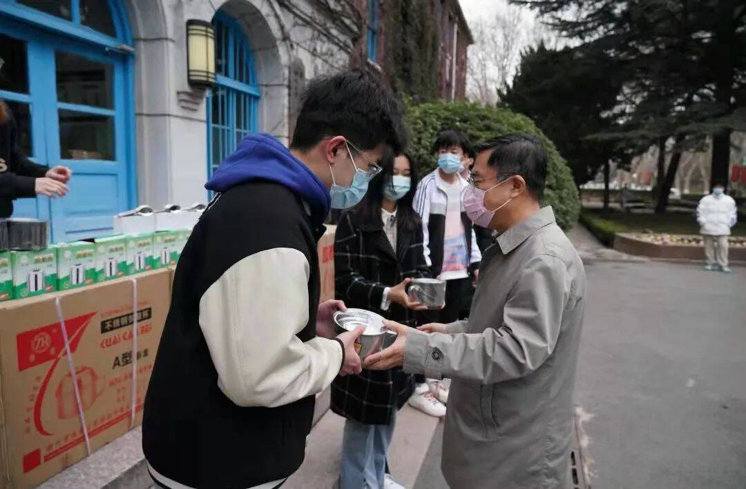 齐鲁网·闪电新闻3月19日讯 根据属地疫情防控要求,青岛高校暂时取消堂食。为保障同学们用餐便捷安全,提倡绿色节约的生活方式,3月18日上午,青岛科技大学党委书记马连湘、校长陈克正代表学校为在校的全体科大学子配发33922套防疫爱心餐盒,并寄语全校师生,共同抗疫。