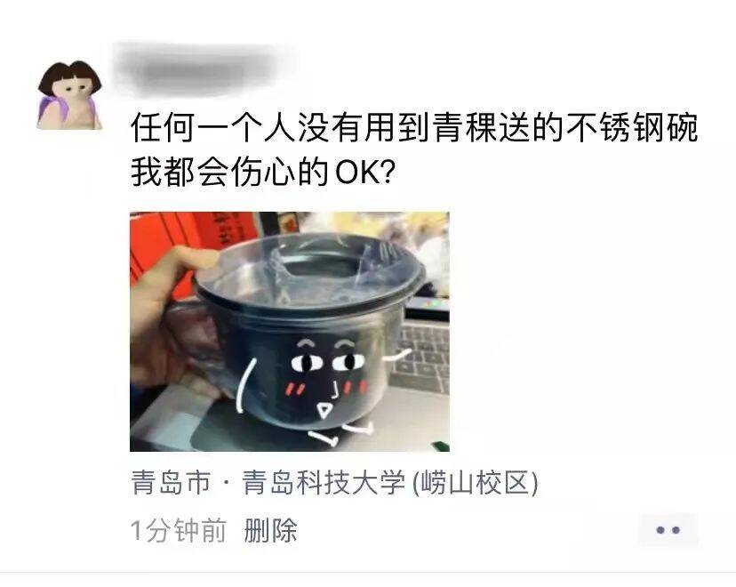 民以食为天。除了基本的物资保障,“铁饭碗”的出现,不仅省下了打包费,并且更加安全、环保、健康,是学校在这个特殊时期对同学们的细致关怀。