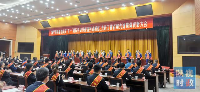 2022 年陕西省庆祝“五一”国际劳动节暨省劳动模范、先进工作者和先进集体表彰大会今天在西安召开。