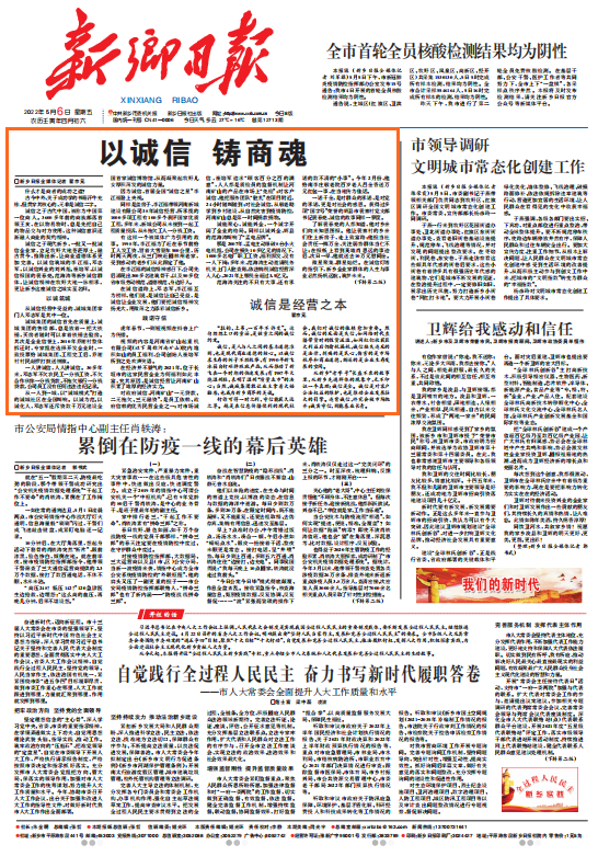 从新乡“老字号”长盛不衰的故事里,从新乡先进群体的现象中,无不印证一个真理:诚信是金。诚信是对客户合法权益的维护,也是推动企业发展壮大的引擎。违背诚信,终究会被市场抛弃;诚实守信,则能基业长青。