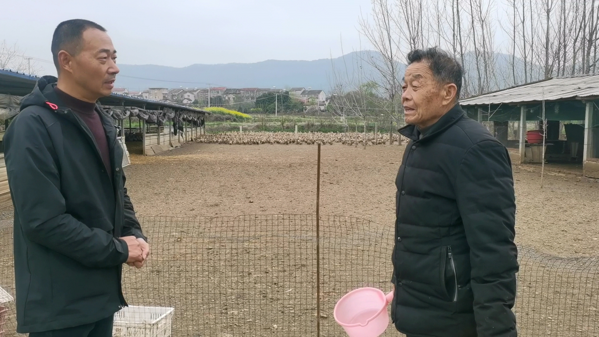 摄像记者“闯入”,鸭群惊慌折返于岸边。杨小华走近,它们倒谈定些许,想来这位村支书来访定是不少。