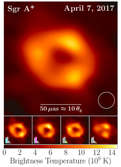 基于对望远镜基线覆盖的情况、时变特征、以及星际散射性质的理解,并结合仿真数据,我们可以说EHT观测数据有力地证明了Sgr A*的图像确实由一个直径为50微角秒的环状结构主导,这与质量为4百万倍太阳质量,距离地球为8kpc的黑洞所预期的“阴影”的大小非常一致。