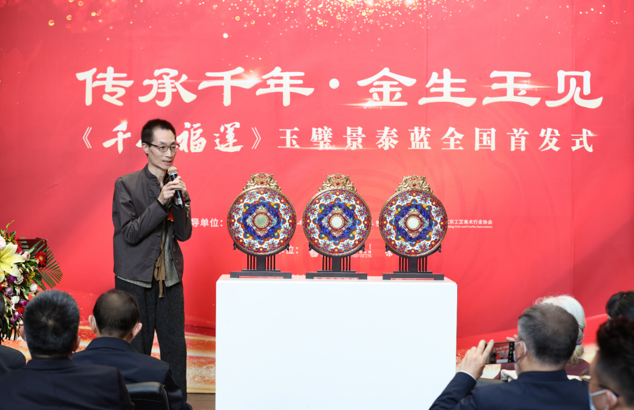 中国工艺美术协会副会长王志杰讲话表示:“《千秋福运》作为首款玉璧景泰蓝,将玉雕和景泰蓝两大非遗国粹完美合璧,以8000年玉文化与5000年铜文化相融合,不仅很好地弘扬了大国非遗,更展现出了新时代中国工艺美术的“中国特色、中国风格、中国气派,是一件美轮美奂的艺术杰作! ”