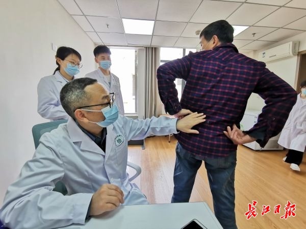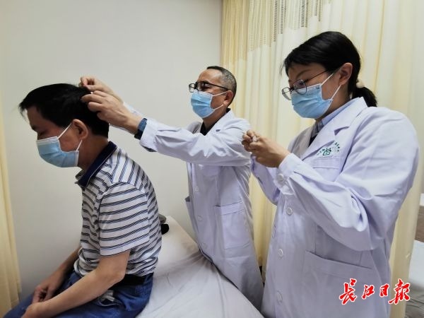 52岁的装修木工刘水洲平时负重、弯腰较多,每年都会腰痛一次,最近疼得直不起腰,步行吃力,彭教授为他在头部、腰部施针。“舒服多了,刚扎完针就不疼了,下蹲、弯腰不费劲了!”刘水洲兴奋不已。