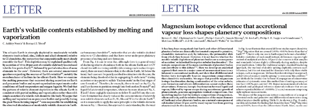 两篇文章的结果指向了同一个方向,那就是早期地球经历了部分熔融气化的阶段,而且这是行星吸积过程中熔融挥发的自然结果。