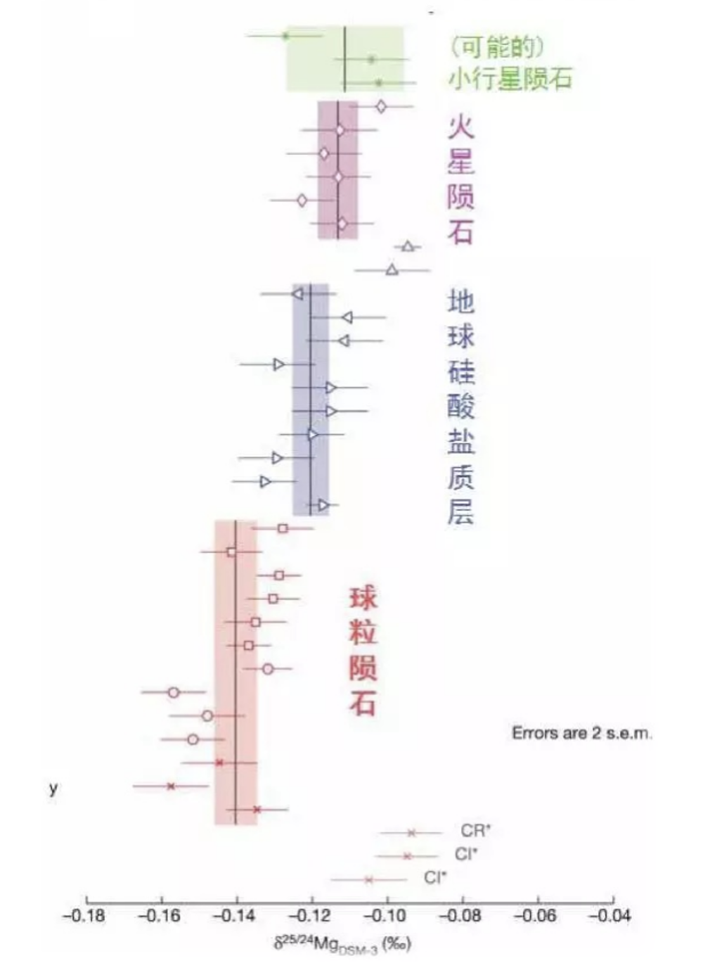 25Mg/24Mg比例比较(Hin et. 2017,修改来自知乎@haibaraemily)