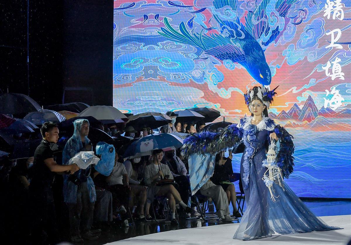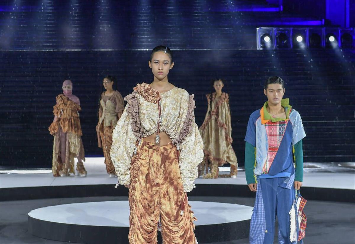 5月31日晚,武汉设计工程学院“2022届时尚设计学院优秀毕业作品动态展”在夏雨中浪漫上演,主题《向尚而生》寓意青年学子历经重重挑战,向着心中的时尚理念勇往直前。