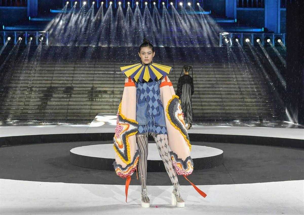 “今晚的大秀既是一场优秀毕业生作品的动态展演,也是我院学生跨专业合作的一项综合性实践活动”,时尚设计学院周双老师介绍,作品展共发布了81套优秀毕业设计作品,其中时装设计作品53套、演艺服装设计作品24套、珠宝首饰设计作品4套。据悉,63名模特和24名幕后化妆造型人员也全部由学院服饰表演与推广专业学生担任和负责。“模特们丝毫不受大雨影响,以良好的职业素养和敬业精神圆满完成了整场演出,正好体现了‘向尚而生’的大秀主题。”周双老师表示。