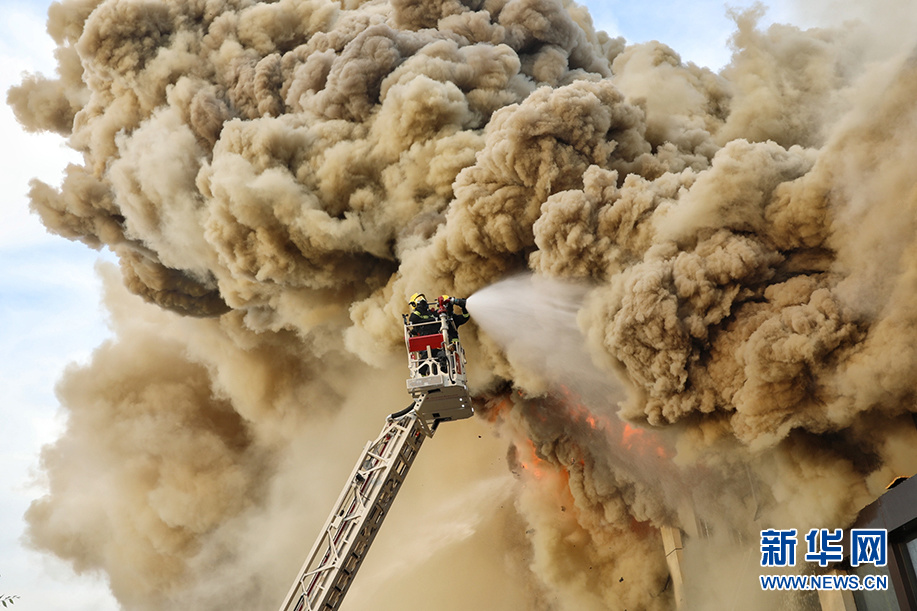 刘亮和队员进行高空灭火。 新华网发