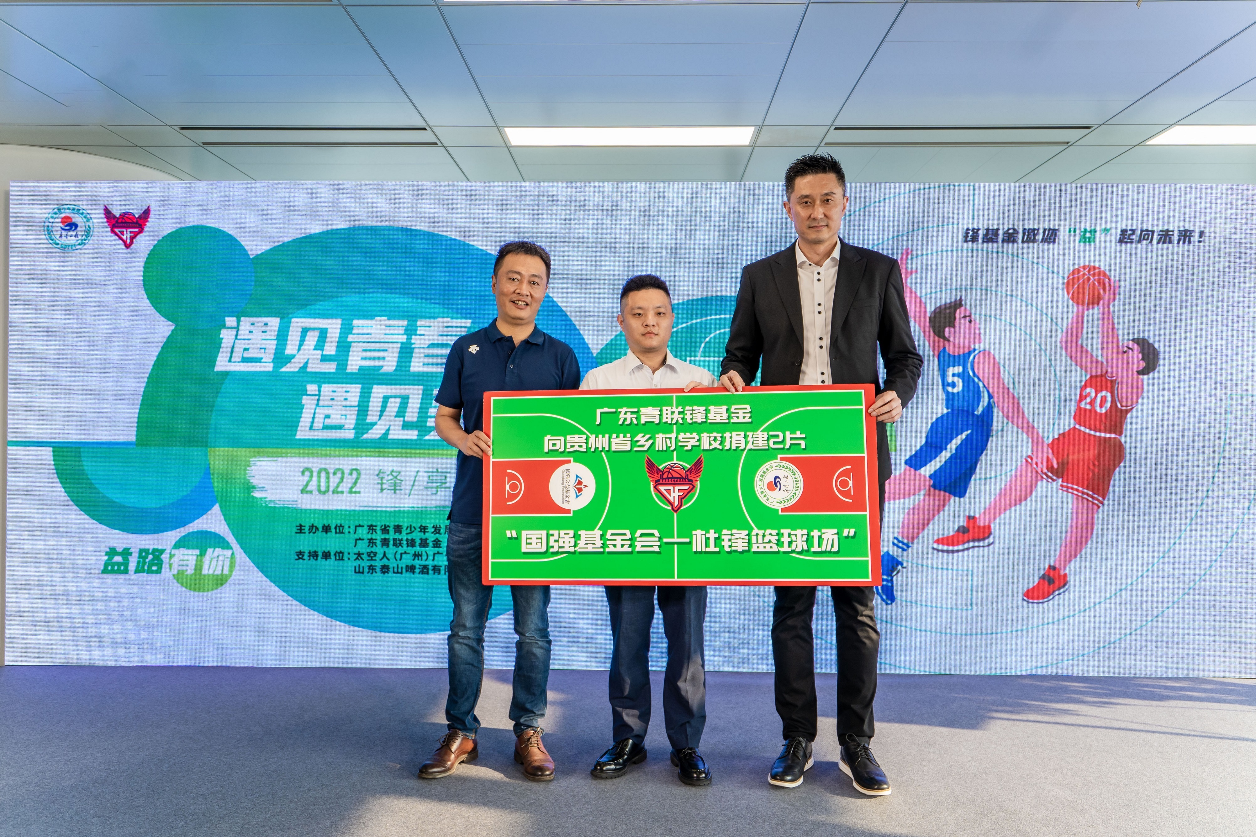 中国体育报讯 “遇见青春·遇见美好”——广东青联“锋基金”2022“锋享之夜”活动日前在广州举行。现场,来自粤东、粤西、粤北,以及云南、湖北、新疆多地“杜锋篮球场”项目的学校师生代表,向这一体育公益项目的参与者表示诚挚感谢。