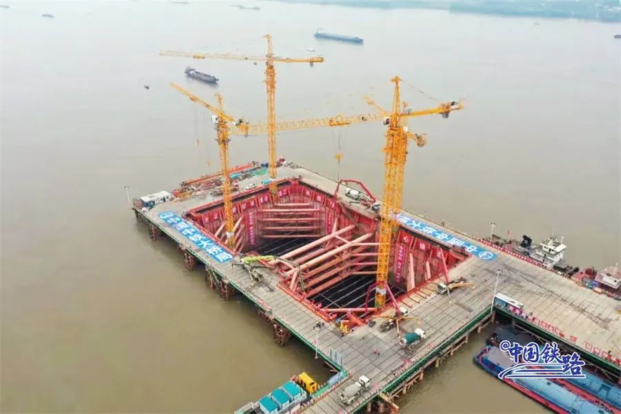 马鞍山长江公铁大桥是巢马城际铁路控制性工程,采用三塔两主跨设计,单跨1120米,是世界首座千米级三塔公铁两用斜拉桥。5月20日,主桥Z4号墩顺利浇筑承台第一层混凝土,在长江主汛期来临前实现全线关键控制性工程的重大突破。