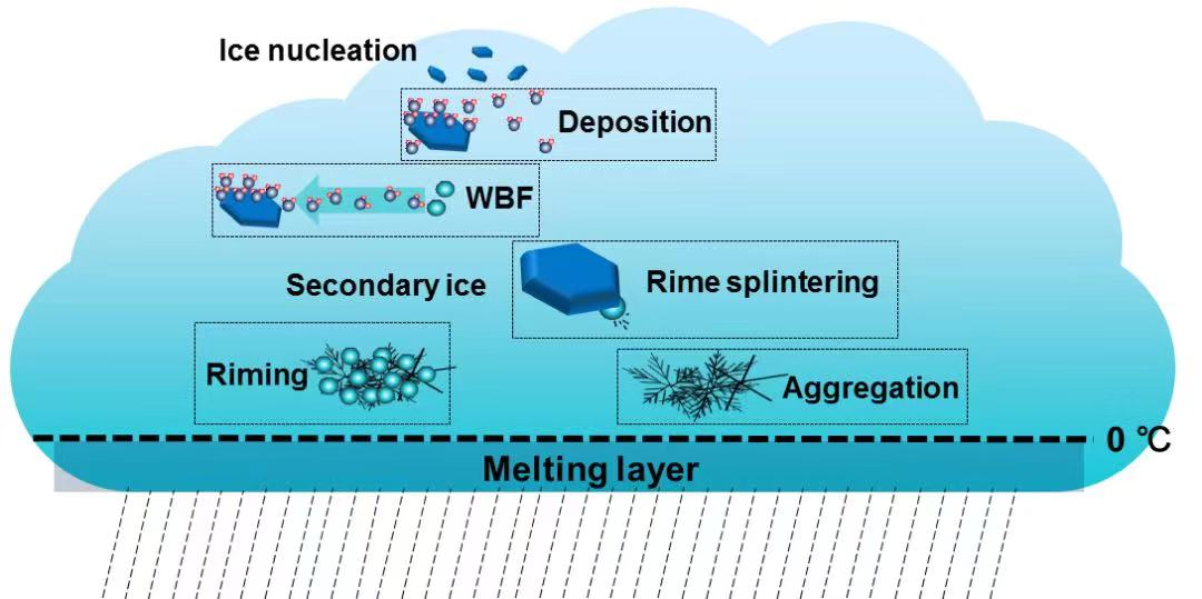 学过高中地理的我们都知道,在对流层内,高度每下降100米,气温升高约0.6摄氏度。我们抬头望向天空,遥远的云端有很多冰粒子,它们从云中脱落并下降一段时间后,周边大气温度逐渐升高至0℃。这时冰雪粒子开始融化,变为冰水混合相态,直至完全融化为雨滴。在冰水转换过程中,如果你拿雷达照射这一区域,会发现这里的回波比其他地方都亮,科学家给这种现象起了一个名字叫作零度层亮带,那么零度层亮带是怎么形成的呢?我们先来了解一下它吧!