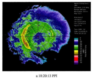 (3)速度效应:当冰晶完全融化后,在表面张力的作用下转变为球形雨滴,所受阻力减小,降落速度也比冰晶、雪花大很多,使得单位体积中降水粒子的数目n大大减少,由②式可知,反射率因子Z相应减小,亮带以下回波减弱,从而突出了亮带。