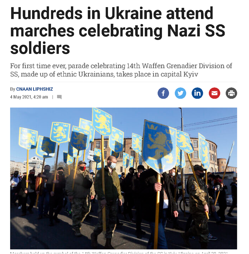 尽管乌克兰方面对于这种问题为何会屡屡出现三缄其口,支持乌克兰的西方媒体也大多选择回避此事,生怕报道此类事件会给俄罗斯的军事行动增加“合法性”,但从一些以色列和其他地区的犹太人媒体的报道来看,纳粹徽记频频出现在乌克兰的军队中恐怕并非“偶发”事件,而已经成为乌克兰必须严肃面对和解决的问题。