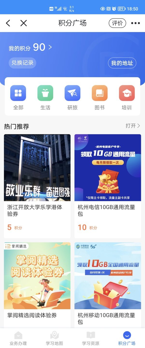 在学习积分广场,不同年龄层次学习者获得的校外课堂、技能培训、社区教育、老年教育等各类学习成果,都可以通过大数据学习积分计算模型动态生成学习积分。学习者凭借学习积分可以兑换书籍礼品、银行商超电信宽带抵用券、研学文旅门票等。同时,学分银行创新家庭积分概念,年轻人的学习积分,可以给老人兑换老年开放大学素养类课程,老年学习者通过学习,又可以给孩子兑换研学类产品。