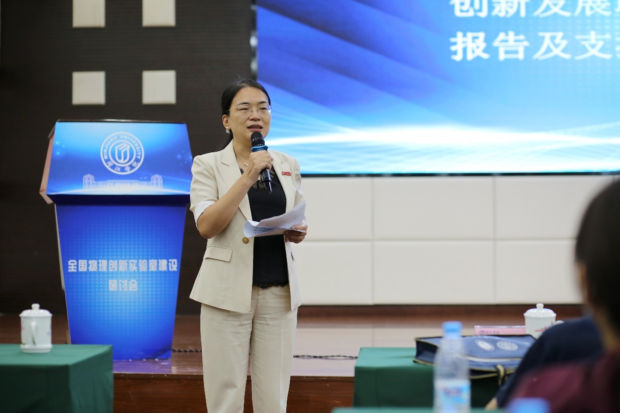 傅高升副校长首先致欢迎辞,并代表学校感谢教育部大学物理课程教指委和全国物理实验教学仪器创新发展联盟厂商代表对闽江学院物理学科的支援和强力支持,表示学校会抓住此次机遇大力发展物理实验学科。