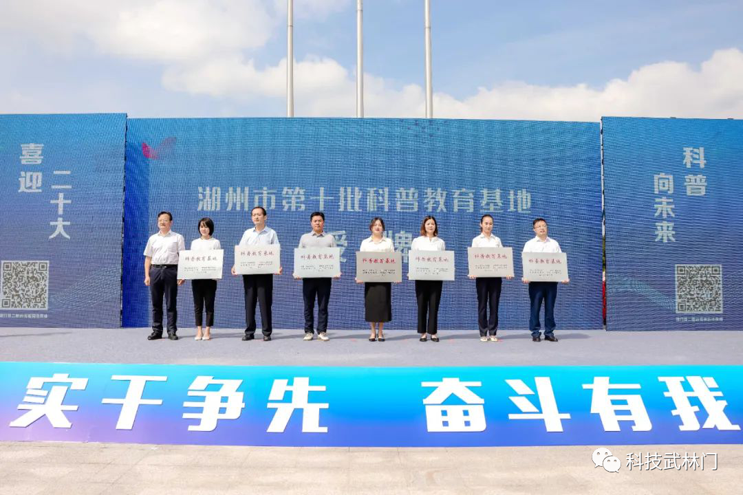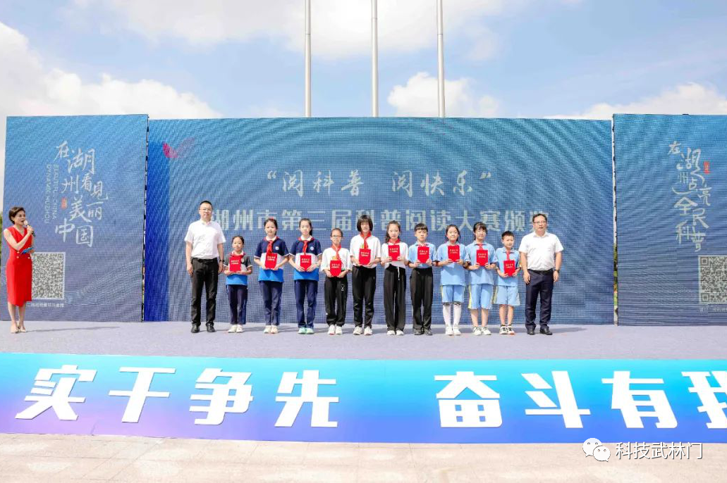 活动中,领导和嘉宾们为“阅科普 阅快乐”湖州市第三届科普阅读大赛获奖学生代表颁发荣誉证书;湖州市第十批科普教育基地首发亮相;湖州市首批“浙江省科学家精神教育基地”授牌,梁希国家森林公园、钟兆琳故居、安吉“两弹一星”事迹馆三家基地负责人表示将充分挖掘和利用科学家精神教育资源,丰富科学家精神传播形式。安吉县第七小学的师生团队以研发设计“躺休课桌椅”为题材,带来了精彩的科普剧表演——《梦想天空》。