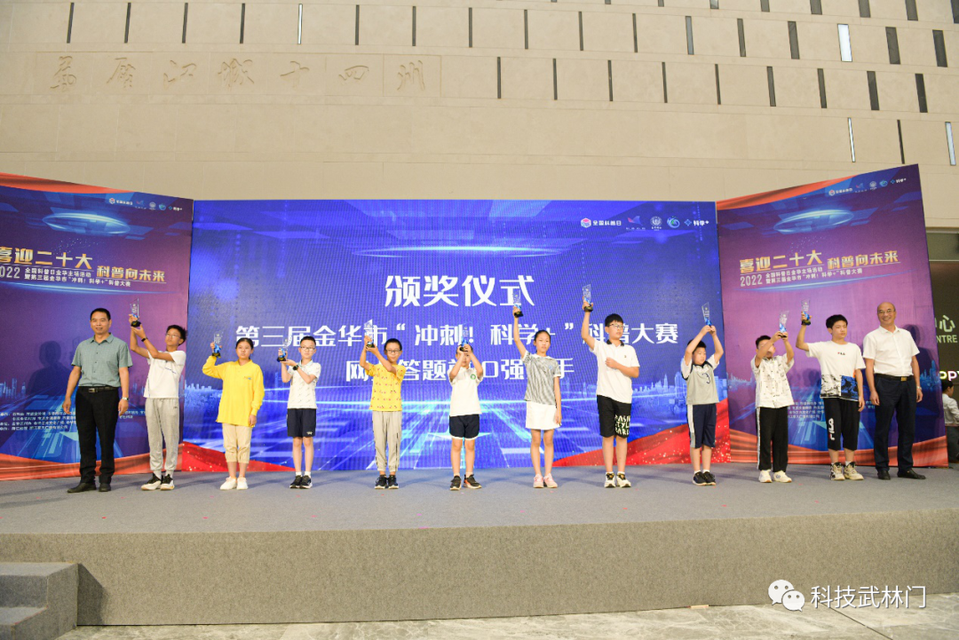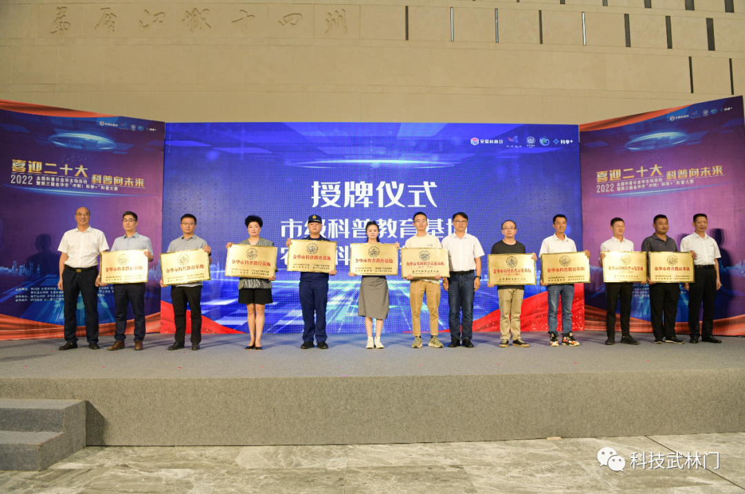 启动仪式上为浙江省科学家精神教育基地、新建市级院士专家工作站和新认定的市级科普教育基地、市级农村科普示范基地代表进行了授牌,为第三届金华市“冲刺!科学+”科普大赛网上答题前10强选手进行了颁奖。启动仪式结束后,开展了第三届金华市“冲刺!科学+”科普大赛首场比赛。