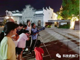 在当晚的夜空下,经过科技辅导员的指导,天文爱好者们使用专业天文望远镜探秘星空,观察太阳系最大的两颗行星——木星和土星,弥补肉眼看不到的遗憾。