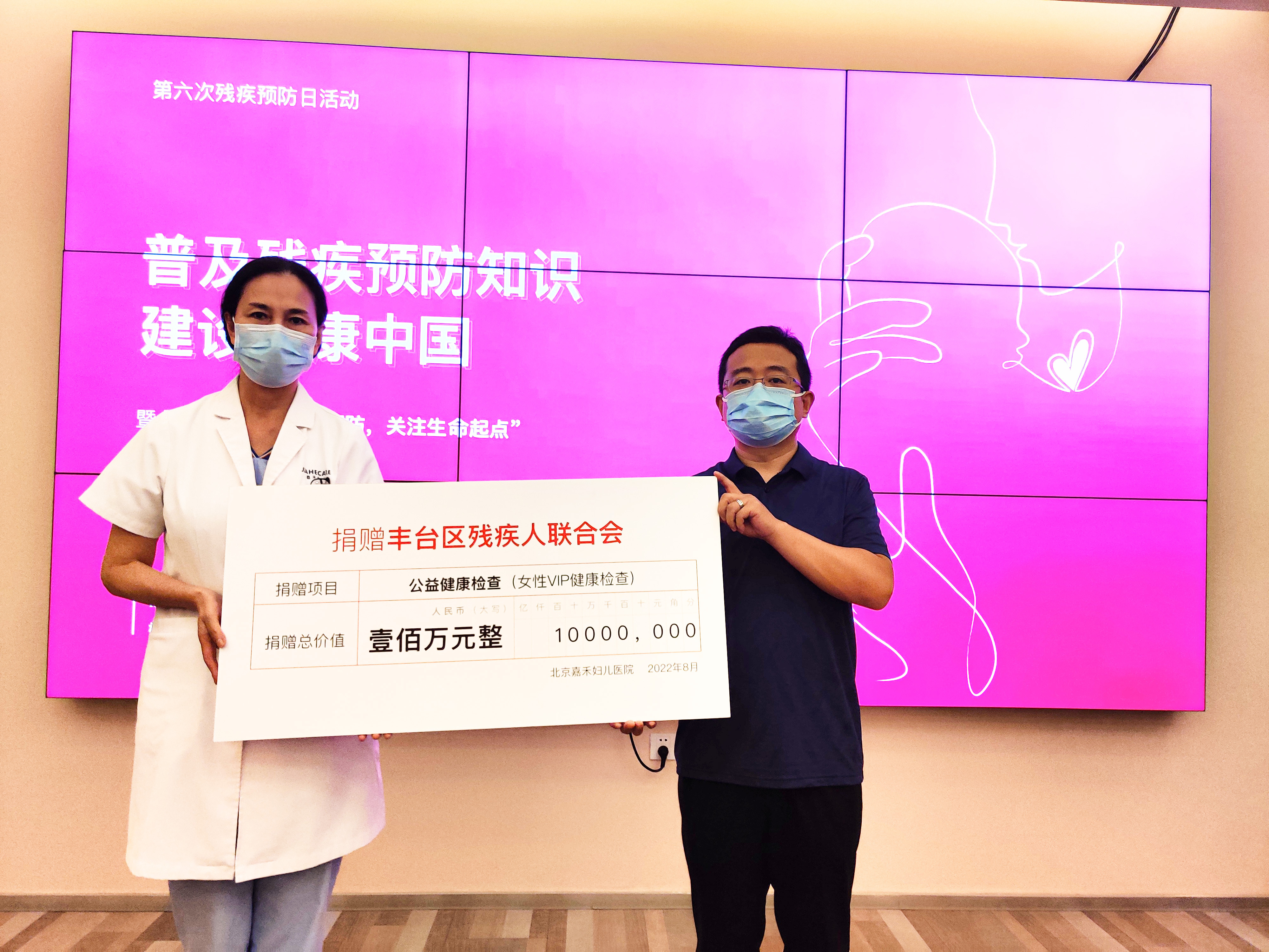 在启动仪式上,北京嘉禾妇儿医院向丰台区残疾人联合会捐赠了价值100万元的公益健康检查项目,用于加强婚前、孕前保健及健康婚育指导,加强产前筛查、产前诊断,完善优生优育相关健康教育、咨询指导、筛查评估和综合干预,完善出生缺陷预防、诊断、治疗及追踪的全链条服务。业务院长丁晓萍教授介绍说:“北京嘉禾妇儿医院作为丰台区重点招商引资的非公医疗机构,一方面努力提升业务水平,为母婴群体提供产科、妇科、儿童保健、产后休养、产后康复、医疗美容等专业的医疗和健康服务,一方面秉持全心全意为人民服务的宗旨,立足医疗机构的专业优势,积极开展社会公益活动,持续关爱弱势群体,助力残疾妇女儿童公益事业。在丰台区残疾人联合会的牵线搭桥下,扎扎实实为残疾人办实事,开展了多种形式的扶残助残公益行动。特别是与北京妇女儿童发展基金会、中国狮子联会北京希望服务队等公益组织、社会团体建立了长期的公益合作伙伴关系,不间断地为残疾群体送温暖、送爱心、送医疗,以点滴汇成江海,持续助力残疾人健康事业,努力担当起一份造福大众健康的使命和责任。”