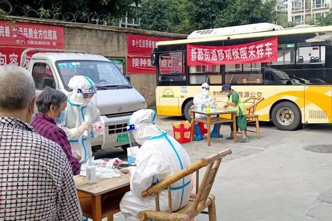 据了解,为确保核酸检测范围能全面覆盖到小区、院落、广场、商铺附近的市民,香投集团蓉桂运业公司下属蓉桂公交公司与新都街道联合开展移动核酸采样工作。