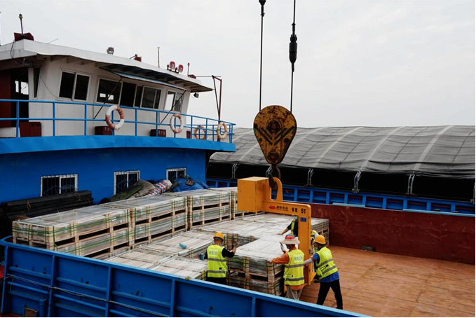 湖北荆州港顺利完成首批光伏玻璃成品装载发运