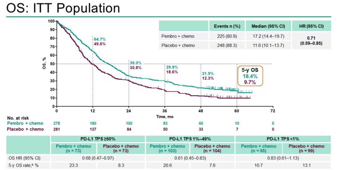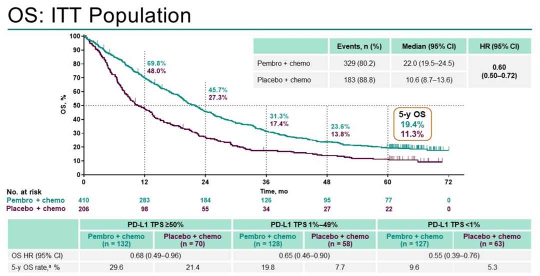 全球首个PD-1+化疗一线治疗晚期NSCLC的5年OS数据出炉