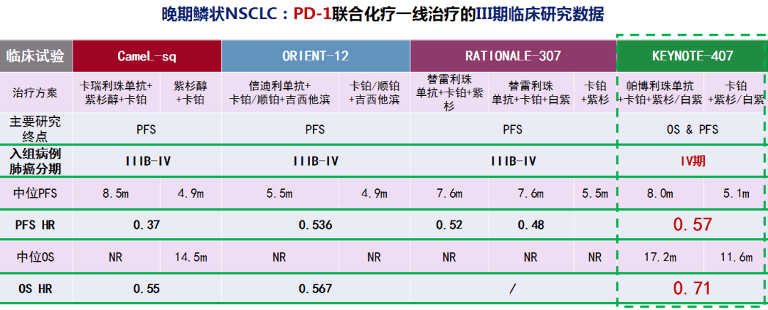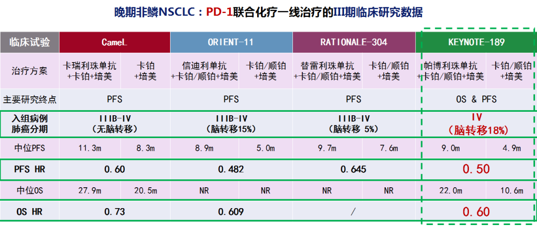 国内获批治疗NSCLC的PD-1联合化疗一线治疗方案的III期研究数据汇总