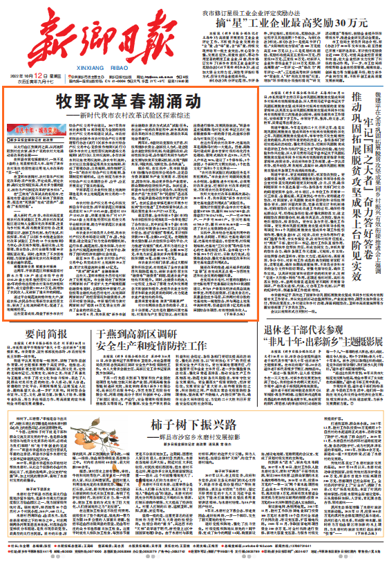 改革的春风吹遍乡村田野,吹进每一个人的生活。正是这一场场伟大的改革,为新乡乡村振兴探索了新路子、提供了新动能、增添了新活力。我们相信,创新常在的新乡,将继续当好深化农村改革的先锋军,再次为中国“三农”的改革前行扬起风帆。