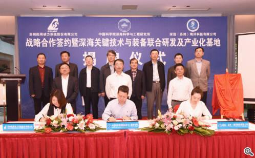 21世纪是海洋的世纪。4月23日,苏州船用动力系统股份有限公司、中国科学院深海科学与工程研究所、深远(苏州)海洋科技有限公司合作签约仪式在苏州工业园区举行。深海关键技术与装备联合研发及产业化基地同期揭牌。未来,三方将发挥各自优势,在关键技术攻关、科技成果转化、战略决策咨询、人才交流培养等多方面开展深度合作,为“海洋强国”战略贡献力量。中国科学院深海科学与工程研究所所长丁抗,苏州工业园区党工委委员、管委会副主任黄海涛,江苏省工业和信息化厅巡视员秦雁等参加活动。