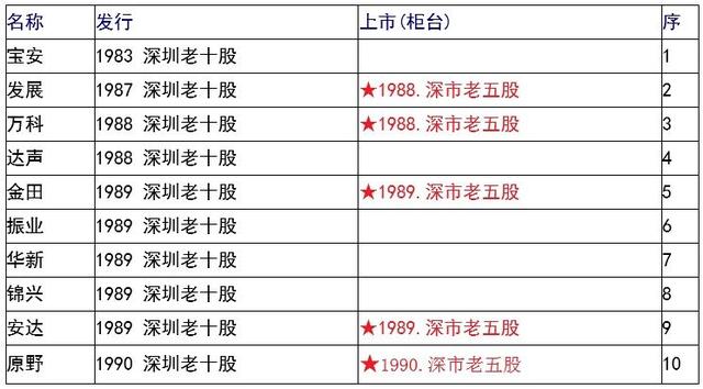 遥想1987年,深圳共有5家公司实现股份制改造并上市,这便是深圳人所熟悉的“老五股”:深发展(现“平安银行”)、深万科(现“深万科A”)、深金田(现已退市)、深宝安(现“深宝安A”)和深原野(现“世纪星源”)。