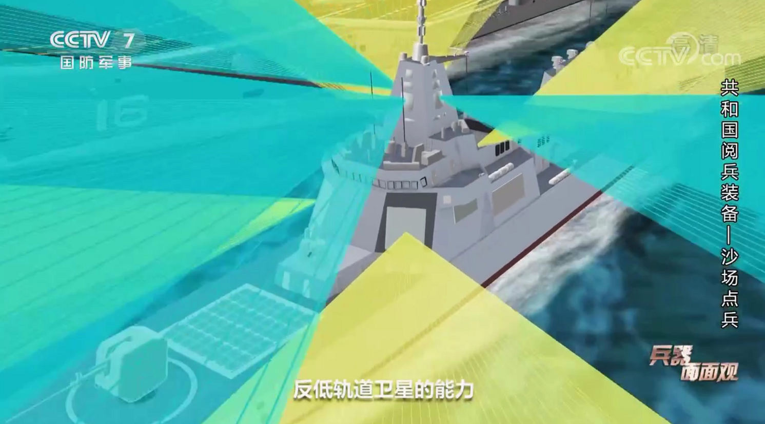 ▲央视披露的055万吨大驱具备了反低轨道卫星能力(图片来源于:网络)