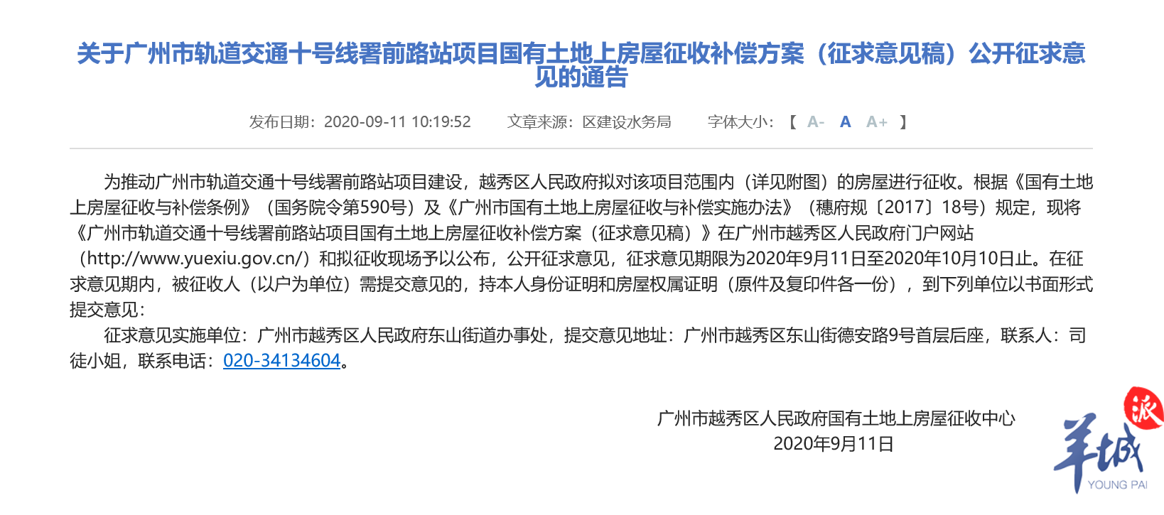 记者还留意到,根据广州市越秀区建设和水务局此前公布的该局2020年上半年工作总结及下半年工作计划显示,为保障轨道交通十号线至十四号线5条线路共19个站点及8个区间征收工作,越秀区内的纪念堂站、梅东路站、署前路站等多个站点已启动征收前期工作,完成借地约19.8万平方米,完成率达72.5%。