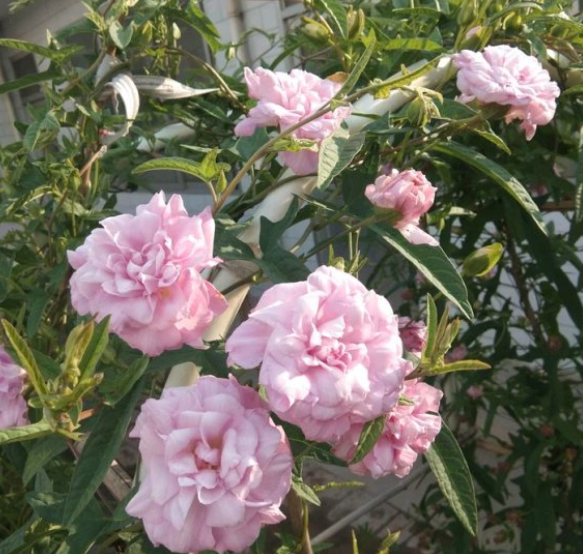我们只需要找一个靠墙的位置,将他栽上,给他做一下支撑,它就能够快速的生长,快速去攀爬,自己缠绕性能非常的强,一年就能够爬满整面网子。他的养护也是比较简单的,我们只需要保证光照充足,保证水分充足,肥料一个月给他补充一次,尽可能给他用氮磷钾均衡的肥料,这样就能够让它快速的生长,等到春季的时候补充上充足的磷钾肥,一次就能够开爆,彻底地开出一面大花墙,很简单。