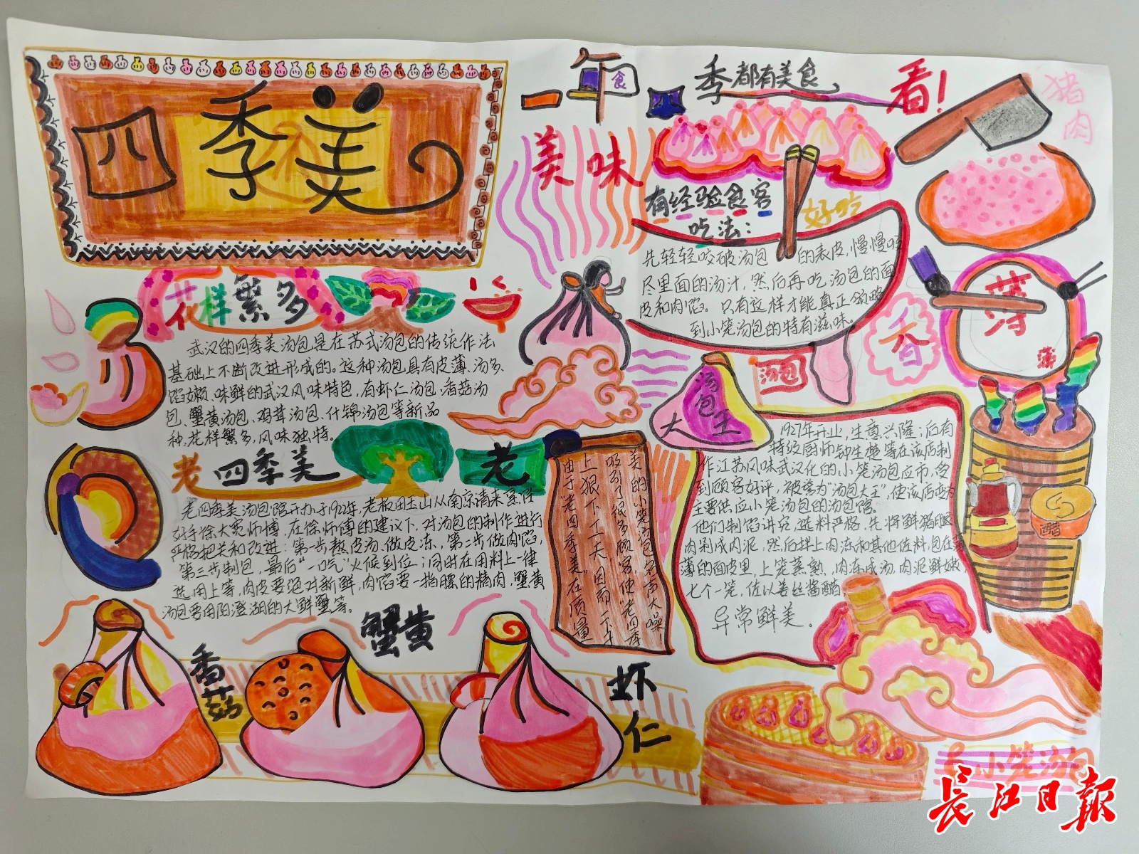 寒假里,李羽馨和小伙伴一起坐进了“四季美”汤包店,拍摄了汤包的制作过程视频,向同学们讲述了武汉的“老字号”故事。她感慨,这些“老字号”经久不衰,背后是武汉人的文化和情怀,也体现了武汉人对热气腾腾的生活始终充满向往。