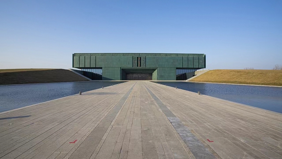 原殷墟博物馆建于2005年,展厅面积1500平方米,曾为殷墟申报世界遗产发挥了重要作用。随着殷墟考古成果不断丰富,原馆难以满足保护展示需要。2020年11月,殷墟博物馆新馆开工奠基。新馆坐落于洹水之滨,与殷墟宫庙遗址隔河相望,占地262.5亩,建筑规模5.1万平方米,总投资10.6亿元,是首个全景式展现商文明的国家重大专题博物馆,是黄河国家文化公园重点项目之一,也是塑造殷墟甲骨文这个中华文化新地标、中原文旅新名片的标志性建筑之一。