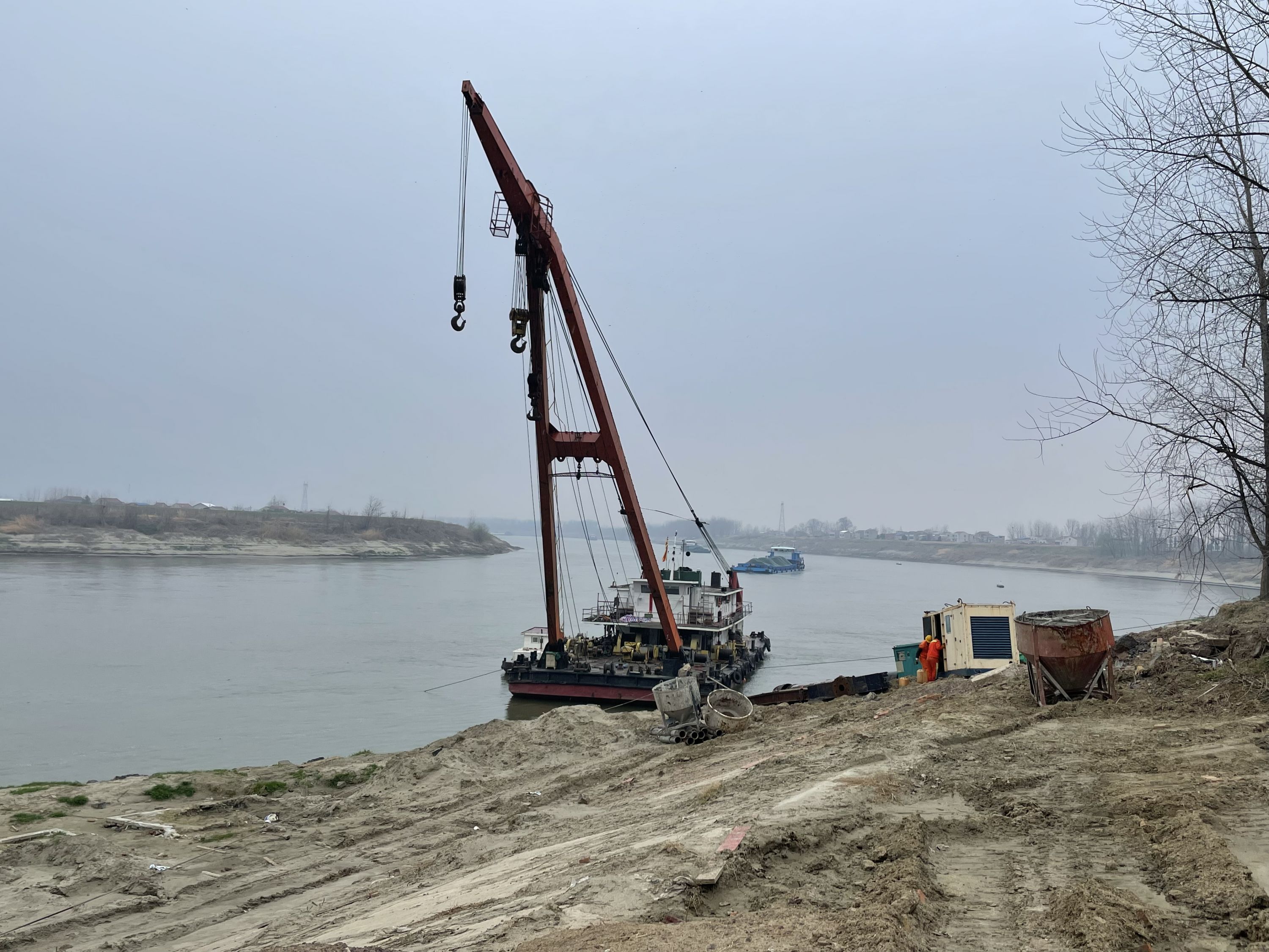 施工船在汉川市城隍镇新华村汉江取水口施工作业。通讯员王悦 摄