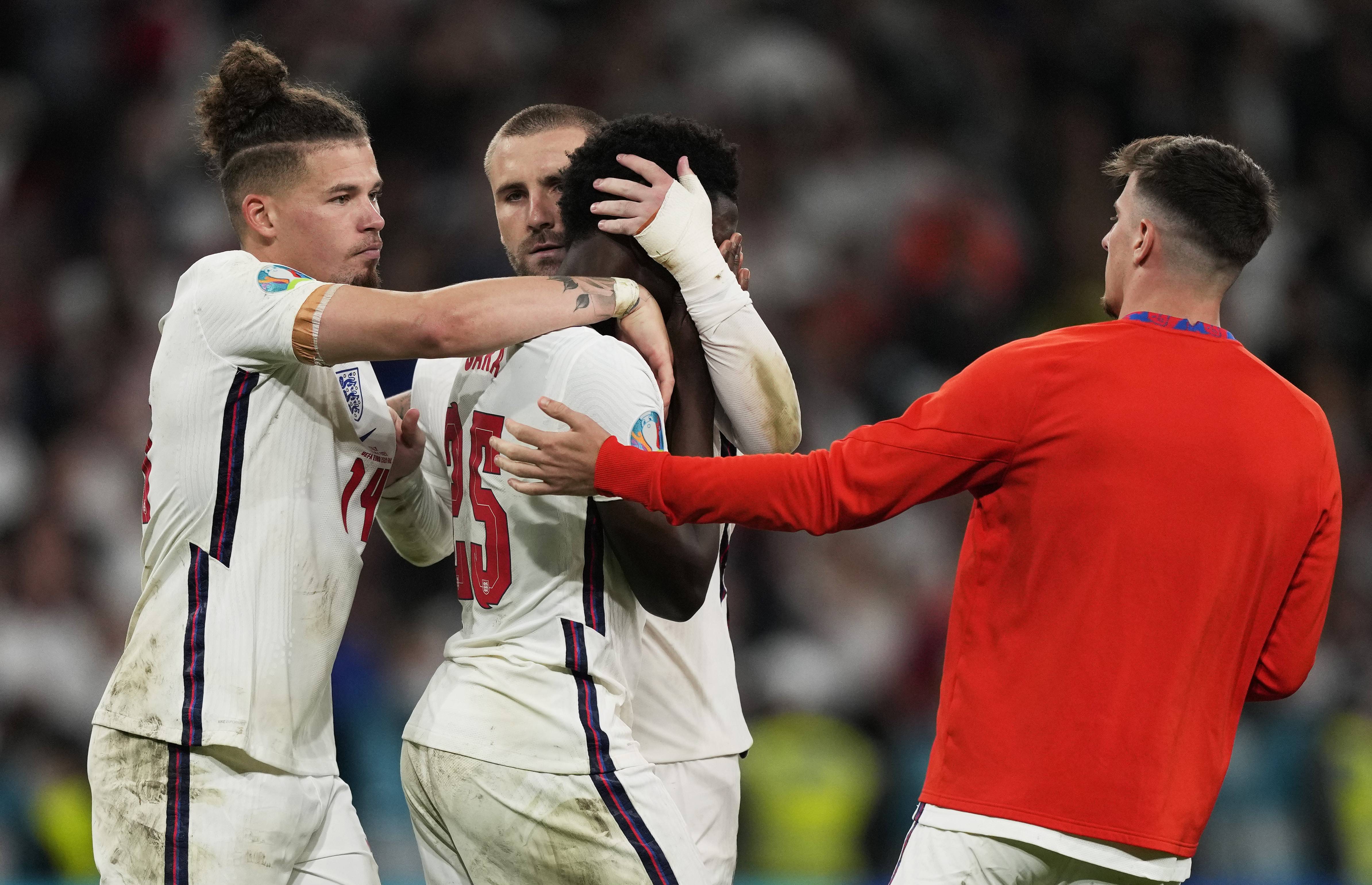 在周日的2020年欧洲杯决赛之后,曼联后卫卢克-肖声援了他的国家队队友拉什福德、桑乔和萨卡,这三位球员在点球大战中罚丢了点球。