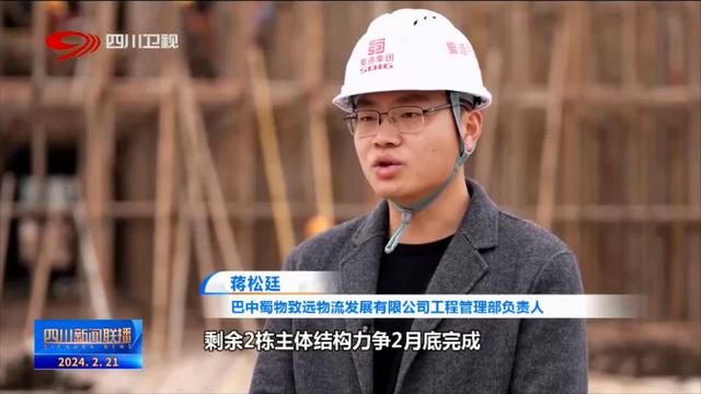 巴中蜀物致远物流发展有限公司工程管理部负责人 蒋松廷:园区主体建筑共8栋,其中6栋主体结构已全面安成,剩余2栋力争2月底完成。